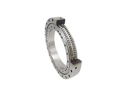 RW型交叉滾子軸承(內外圈整體、帶安裝孔)RW型交叉滾子軸承的內圈和外圈采用一體化構造,實現了部件的高剛性。內、外圈上加工有安裝用螺栓孔,由于安裝 用螺栓孔的尺寸和數量均采用最優設計,可減少安裝引起的滾動面變形,從而獲得穩定的旋轉性能。另外通過提交加工精度,可對應高旋轉精度。